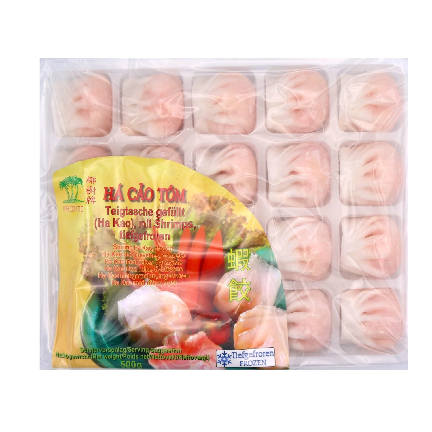 Description:Three Coconut Tree Shrimp Ha Kao 500g (Frozen). A packet of delicious frozen Shrimp Ha Kao from Vietnam, perfect for dim sum lovers out there!